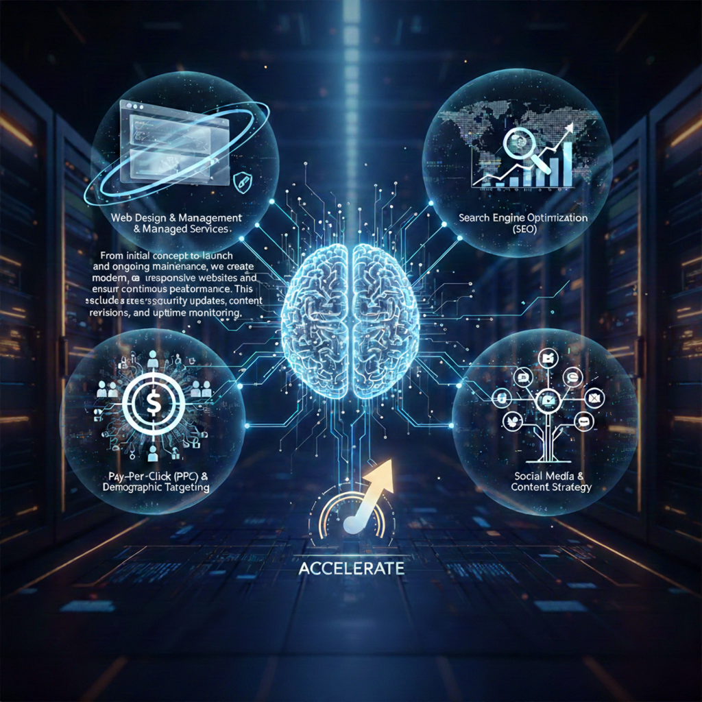 Custom Web Design & Managed Services: Sleek, responsive sites that we build and maintain so you never have to worry about downtime.